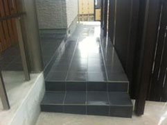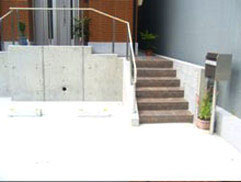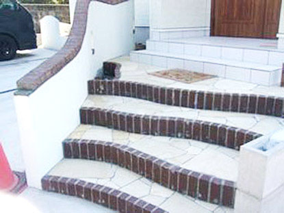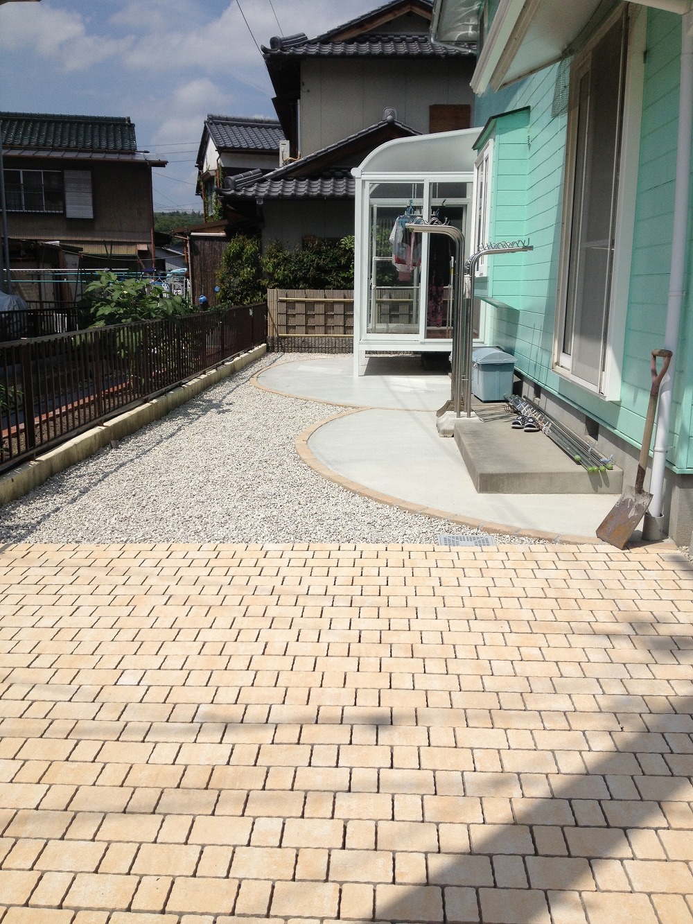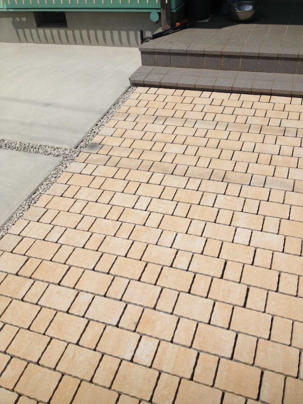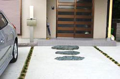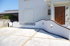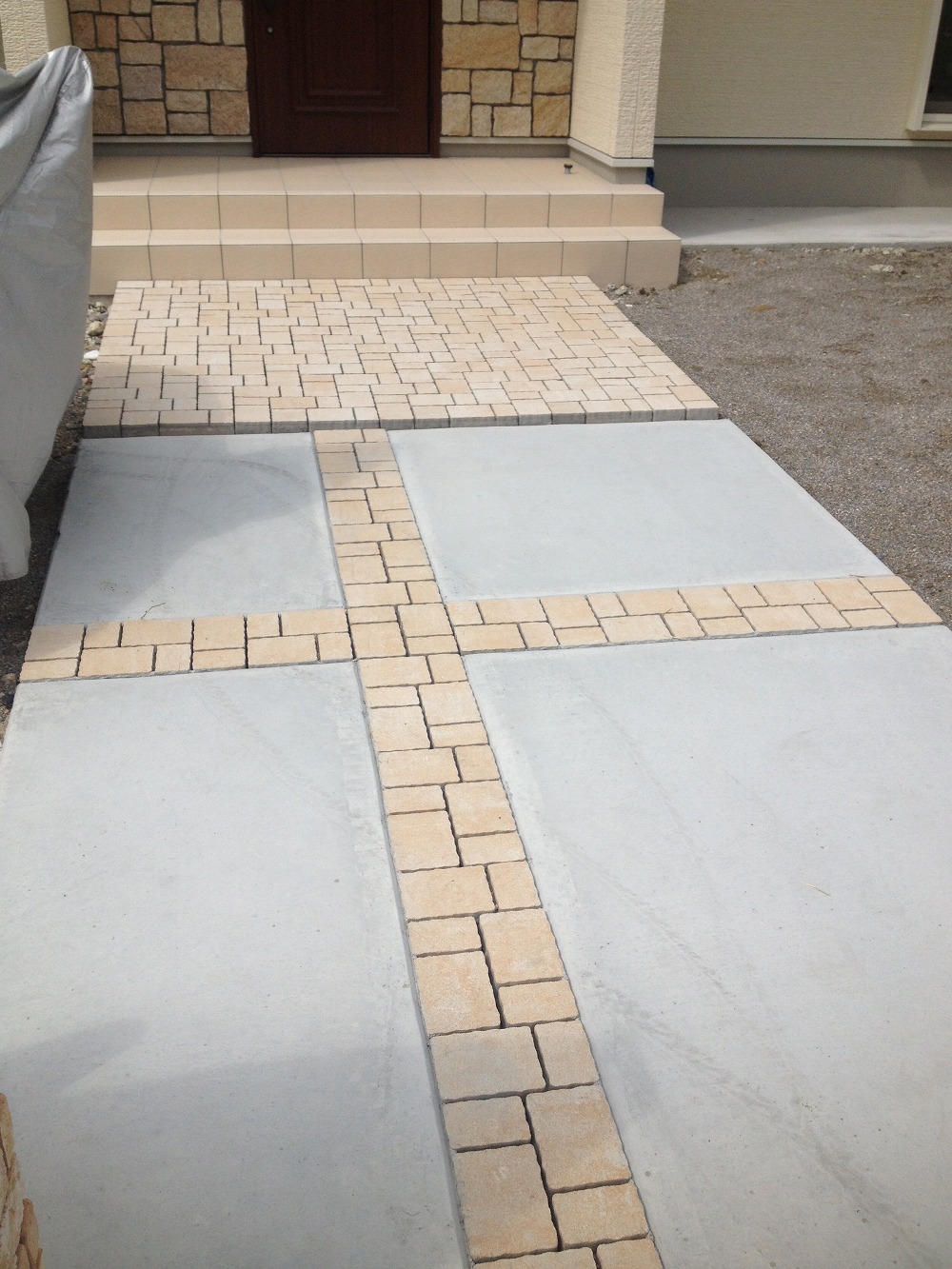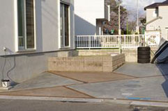 コンクリート駐車場、階段はタイル張りに仕上げました。
