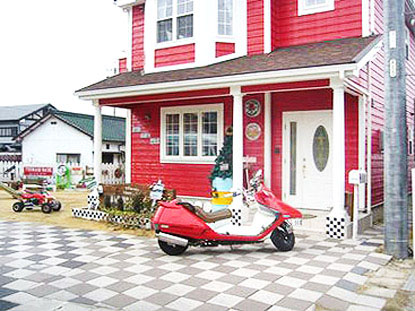 テーマはアメリカンです。ご主人のこだわりでインターロッキングは二色にしました。 ウッドデッキは奥さんの趣味の植物が収納できる様になってます。